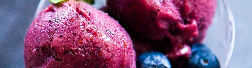 Yes, summer is approaching, and nothing helps cool down our body temperature quite like frozen treats. That’s s why I am ramping up my freezer and refrigerator with grab-and-glow sorbets, doubled-dipped smoothie pops, pitchers of spa-water, and aqua Frescas to satisfy my sweet cravings and to keep me well hydrated. And with nature’s bounty of fresh fruit coming into the season, its time to gather the harvest and put it on ice starting with this berry sorbet. Bursting with antioxidants, blueberries are naturally high in fiber while being low in calories as well as complex carbohydrates. Their oxidative power of reducing DNA damage, lowering blood pressure, maintaining brain function, are a few of the many benefits that rank blueberries as one of nature’s superfoods.